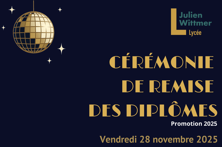 Les lauréats et leurs familles sont chaleureusement invités à participer à la cérémonie de remise des diplômes du lycée Julien Wittmer.