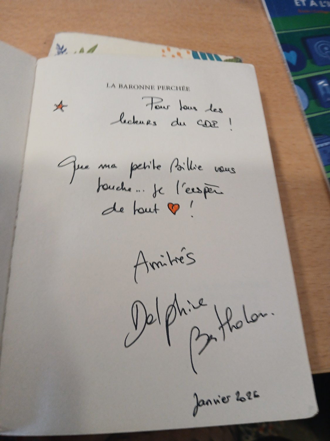 Dans le cadre de l’Échappée littéraire, les élèves de 2NDE1 accompagnés de Mmes Frery, Monier et Trichard ont pu rencontrer, ce jeudi 29 janvier 2026, au CDI Champagny, Delphine Bertholon, autrice du roman « La Baronne Perchée ».