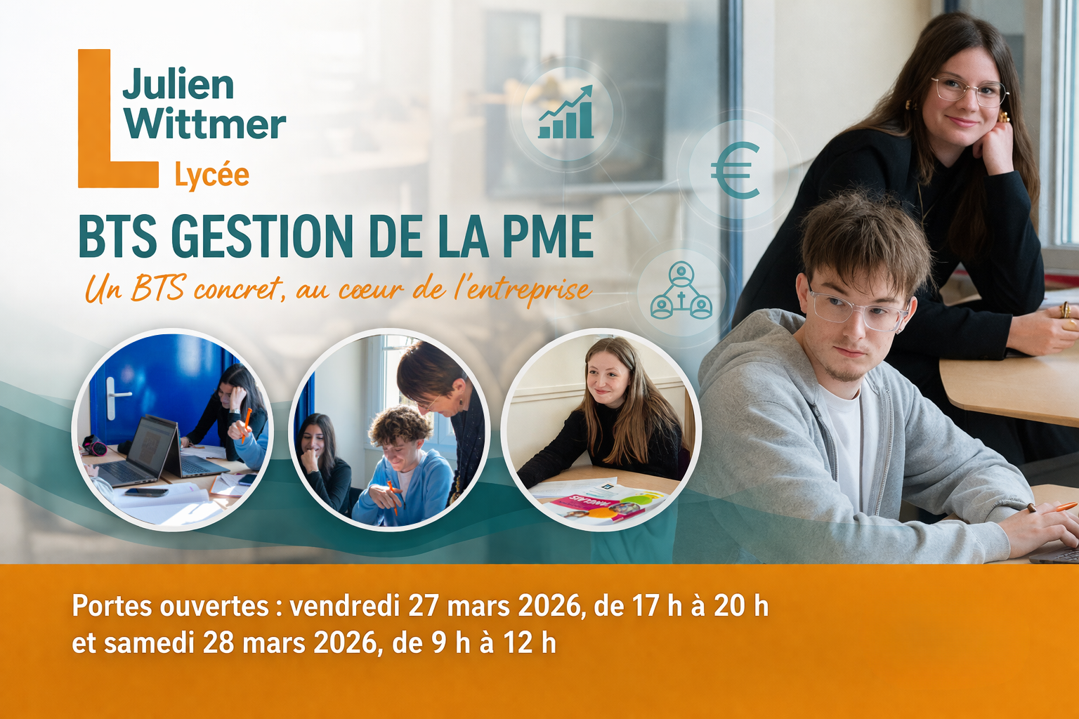Venez rencontrer les enseignants et les étudiants, et découvrir les espaces pédagogiques et de détente dédiés au BTS Gestion de la PME.
