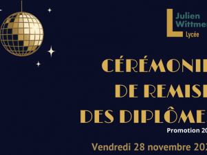 Les lauréats et leurs familles sont chaleureusement invités à participer à la cérémonie de remise des diplômes du lycée Julien Wittmer.